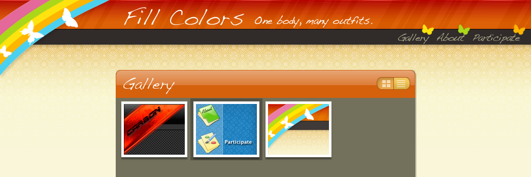 Participants create skins for the Fill Colors application. The catch is that this application cannot be modified, thus showing the power of applying visual changes from the style sheet alone. Everybody is invited to participate!